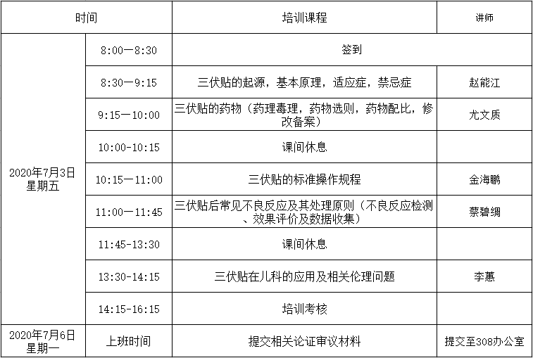 二、培训对象:各区门诊部、诊所已开展 “三伏贴”技术管理、医药卫生人员。