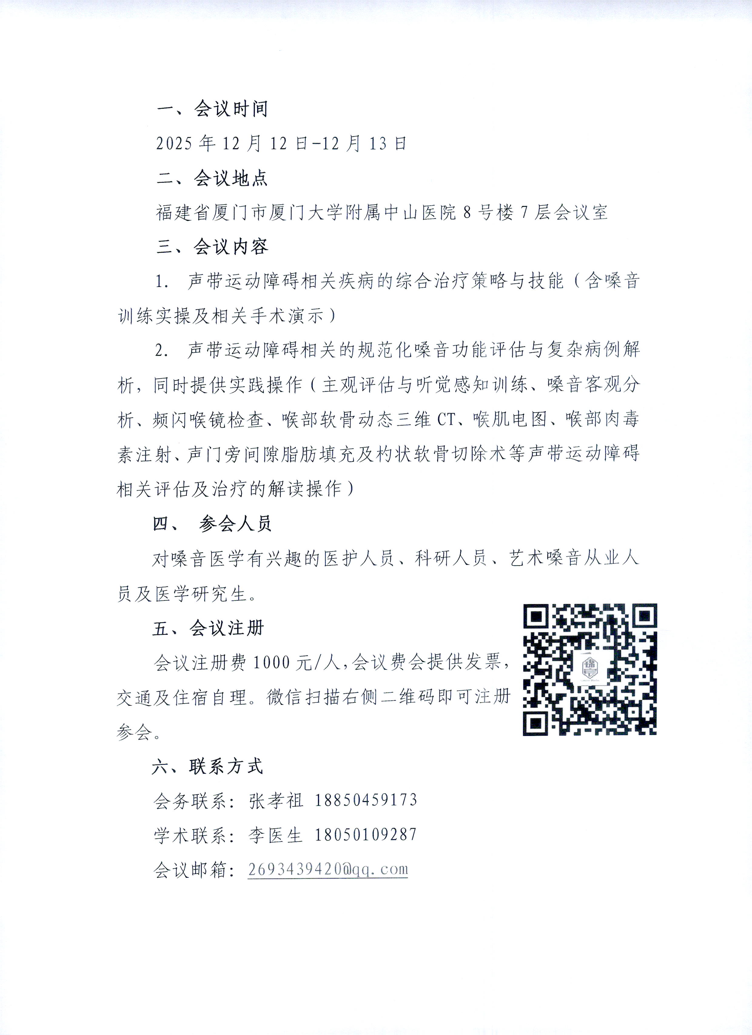 - 培训地点:福建省厦门市厦门大学附属中山医院8号楼7层会议室