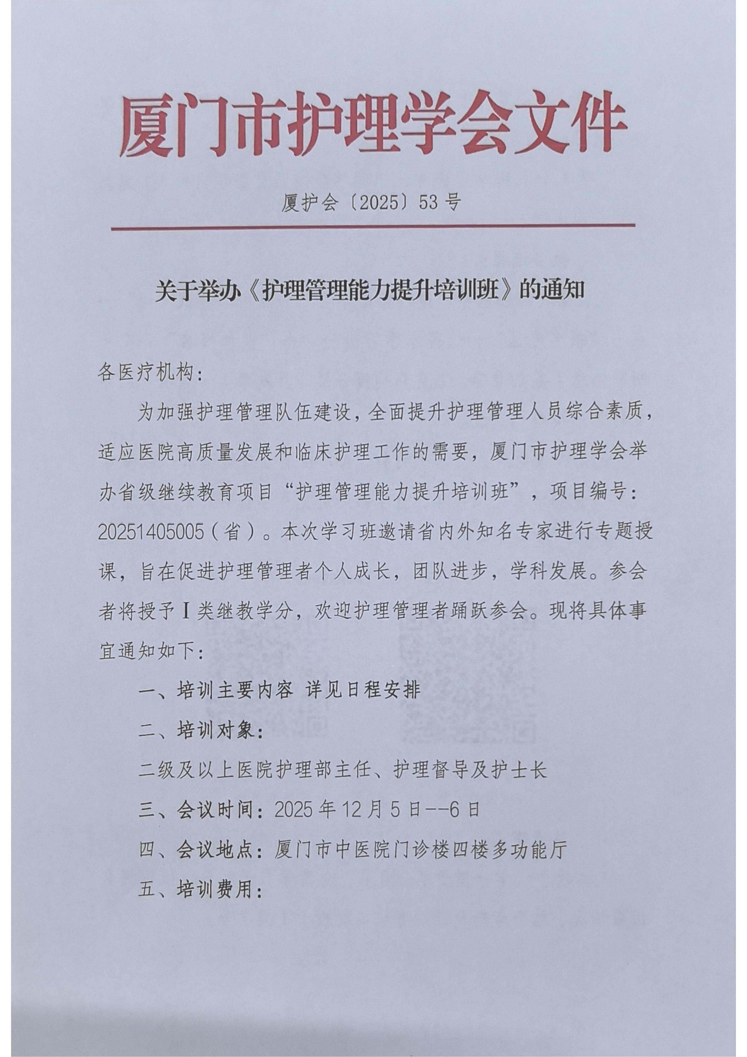 - 培训地点:厦门市中医院门诊楼四楼多功能厅