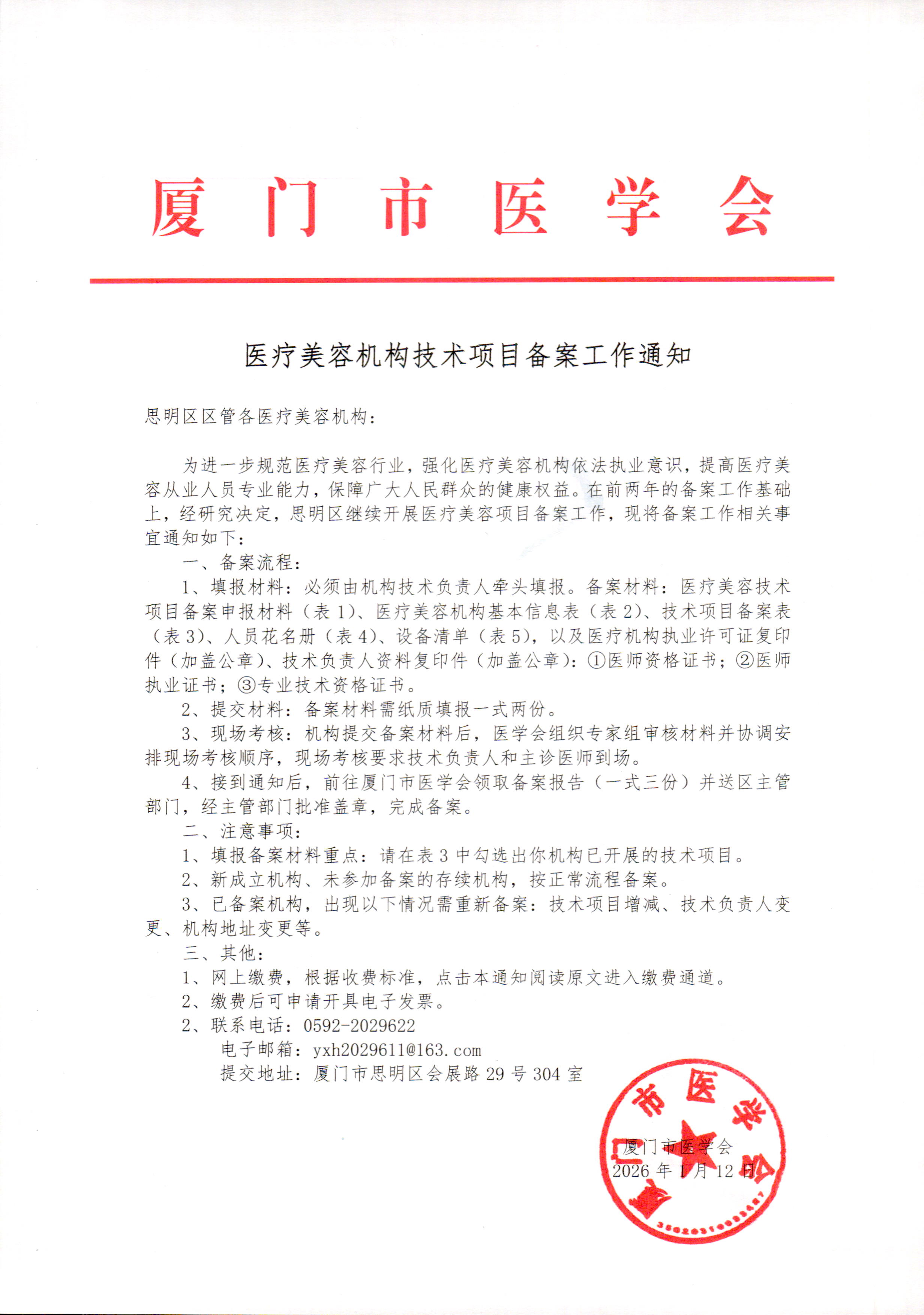 2026年医疗美容机构技术项目备案工作